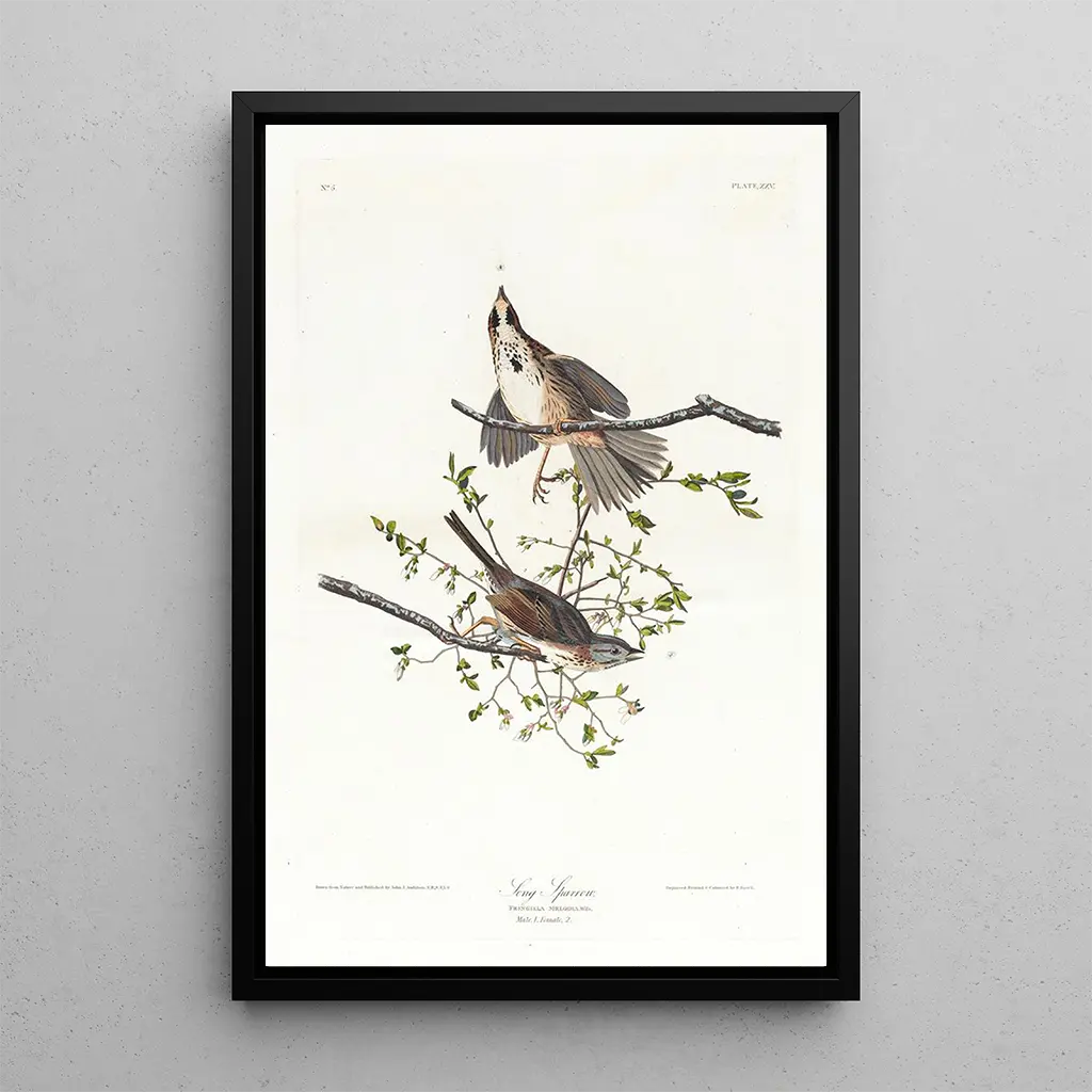 Bruant Sänger: Eine visuelle Melodie der Natur Das Gemälde "Bruant Sänger" von John James Audubon ist eine beeindruckende Darstellung dieses melodischen Vogels, die den Moment einfängt, in dem er sich auf das Singen vorbereitet. Mit warmen Farben und feinen Details vermittelt dieses Werk die Freude und Lebendigkeit der Natur. Die Nuancen von Braun und Gelb verschmelzen elegant, während der zarte Hintergrund die Schönheit des Vogels hervorhebt. Audubon, ein wahrer Meister der Beobachtung, gelingt es, die Energie und das Wesen dieses Vogels zu vermitteln und den Betrachter in eine Welt eintauchen zu lassen, in der die Musik der Natur erklingt. John James Audubon: Ein Künstler im Dienst der Natur John James Audubon, geboren 1785, ist ein Künstler und Ornithologe, dessen Arbeit den Beginn des 19. Jahrhunderts prägte. Sein einzigartiger Ansatz, Kunst und Wissenschaft zu verbinden, ermöglichte es, die Vogelwelt Nordamerikas präzise zu dokumentieren. Beeinflusst von der romantischen Bewegung, suchte Audubon, die wilde Schönheit der Vögel in ihrem natürlichen Lebensraum einzufangen. Sein ikonisches Werk, "The Birds of America", hat nicht nur die amerikanischen Vögel populär gemacht, sondern auch hohe Standards für die ornithologische Illustration gesetzt. Sein Erbe besteht weiter und inspiriert Generationen von Künstlern und Naturliebhabern. Eine dekorative Ergänzung mit vielfältigen Vorzügen Der kunstdruck des "Bruant Sänger" ist eine charmante Ergänzung für jede Inneneinrichtung, sei es Wohnzimmer, Büro oder Schlafzimmer. Seine Druckqualität und Detailtreue machen ihn zu einem fesselnden Werk, das das Auge anzieht und Bewunderung hervorruft. Dieses Gemälde bringt einen Hauch von Natur und Ruhe in Ihren Raum und evoziert Themen wie Musik und Wildleben. Mit der Wahl dieses Leinwandbildes entscheiden Sie sich für ein Kunstwerk, das Ihre Umgebung bereichert und gleichzeitig die Schönheit der Biodiversität feiert.