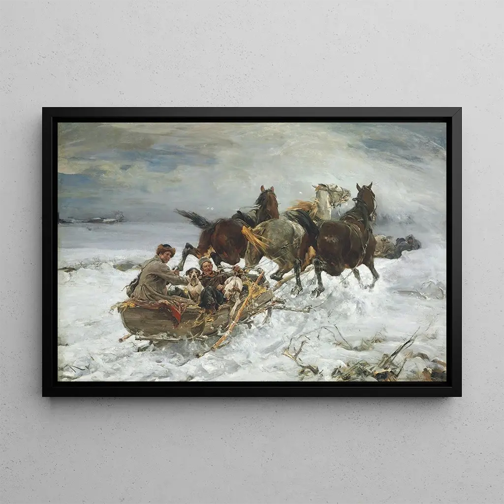 Traîneau tiré par des chevaux : ein Moment des Lebens, das in der Zeit eingefroren ist Die kunstdruck "Traîneau tiré par des chevaux" evoziert eine lebendige und dynamische Szene, in der die Kraft der Pferde mit der Sanftheit des Winters verschmilzt. Die Schneeflocken fallen zart herab und schaffen einen beeindruckenden Kontrast zu den warmen Tönen der Mäntel der Figuren. Alfred von Wierusz-Kowalski, mit seinem Talent, Bewegung einzufangen, taucht uns in eine festliche und fröhliche Atmosphäre. Jedes Detail, von den Zügen der Pferde bis zu den Ausdrücken der Passagiere, erzählt eine Geschichte und macht dieses Gemälde fesselnd und lebendig. Alfred von Wierusz-Kowalski : ein Meister des Realismus Alfred von Wierusz-Kowalski, polnischer Maler des 19. Jahrhunderts, ist berühmt für seine Darstellungen des Landlebens und verschneiter Landschaften. Im Strom des Realismus wandelnd, verstand er es, technische Präzision und emotionale Sensibilität in seinen werken zu vereinen. Beeinflusst von den künstlerischen Traditionen seiner Zeit, inszenierte er oft Szenen des Alltagslebens, wie in "Traîneau tiré par des chevaux". Seine arbeit zeugt von einem tiefen Verständnis der Natur und menschlicher Interaktionen und macht ihn zu einem unverzichtbaren Künstler der realistischen Bewegung. Eine dekorative anschaffung mit vielfältigen vorteilen Dieser kunstdruck von "Traîneau tiré par des chevaux" ist eine perfekte Wahl, um Ihrer Innendekoration eine warme und dynamische Note zu verleihen. Ob im Wohnzimmer, im Büro oder im Schlafzimmer, dieses Bild zieht die Aufmerksamkeit auf sich und weckt Interesse. Seine Druckqualität garantiert eine außergewöhnliche Treue zu den details des originalwerks und bereichert so Ihren wohnraum. Durch die Integration dieses leinwandbildes schenken Sie Ihrem interieur ein kunstwerk, das sowohl die Schönheit des Winters als auch die Freude an gemeinsamen momenten widerspiegelt, und schaffen eine freundliche und einladende atmosphäre.