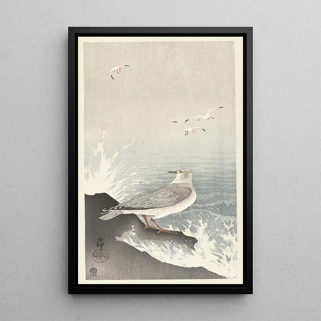 Ohara Koson, aktiv während der Taisho-Periode in Japan, ist bekannt für seine Landschafts- und Tierdrucke. Beeinflusst von der umgebenden Natur und der traditionellen japanischen Kultur, konnte er die vergängliche Schönheit alltäglicher Szenen einfangen. Koson war ein Pionier in der Verwendung von Farbe und Komposition und integrierte Naturelemente in seine Werke. Seine Kreationen werden oft als Zeugnisse der Harmonie zwischen Mensch und Natur betrachtet, und "Mouette sur un rocher" ist ein perfektes Beispiel dafür, das die Bedeutung der Natur in der japanischen Kunst widerspiegelt.
