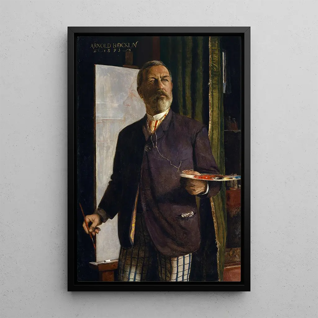 Arnold Böcklin, geboren 1827, gilt oft als einer der vorläufer des symbolismus, einer bewegung, die im späten 19. jahrhundert aufkam. Seine karriere war geprägt von einer ständigen suche nach harmonie zwischen natur und fantasie. beeinflusst von den schweizer landschaften und antiken mythologien, konnte Böcklin werke schaffen, die die menschliche bedingung hinterfragen. Das "Autoportrait dans l'atelier" zeugt von seinem engagement für die kunst und seinem willen, das essenz seiner kreativität einzufangen, während es einen blick in seinen künstlerischen prozess gewährt.