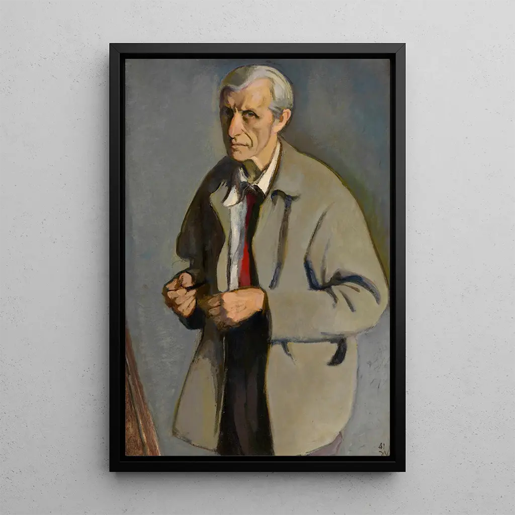 Autoportrait : ein introspektiver Spiegel des Künstlers In "Autoportrait" bietet Jean van den Eeckhoudt eine intime und tiefgründige Sicht auf sich selbst. Dieses Gemälde, durchdrungen von Melancholie, fängt die Essenz des Künstlers durch ein subtils Spiel von Licht und Schatten ein. Die dunklen Farben und die markanten Kontraste schaffen eine introspektive Atmosphäre, die den Betrachter einlädt, in die innere Welt des Künstlers einzutauchen. Die Ölmaltechnik ermöglicht es, die Texturen der Haut und die Nuancen der Emotionen mit großer Präzision wiederzugeben. Dieses Porträt ist weit mehr als eine einfache Darstellung; es wird zu einem wahren Spiegel der Seele, der die Gedanken und Gefühle von van den Eeckhoudt offenbart. Jean van den Eeckhoudt : ein Pionier des Expressionismus Jean van den Eeckhoudt, aktiv im 20. Jahrhundert, gilt oft als Pionier des Expressionismus in Belgien. Sein Werk, geprägt von vielfältigen Einflüssen, die vom Surrealismus bis zur abstrakten Kunst reichen, zeugt von einer ständigen Suche nach Identität und Emotion. Im Verlauf seiner Karriere erforschte er verschiedene Medien und Techniken, stets bestrebt, tiefe und komplexe Gefühle auszudrücken. Seine Autoporträts sind besonders kraftvolle Zeugnisse seiner künstlerischen Vision, die eine Verletzlichkeit und Stärke offenbaren, die noch heute nachklingen. Die Bedeutung seiner Arbeit liegt in seiner Fähigkeit, die Zeit zu transzendieren und die menschliche Seele zu berühren. Eine dekorative Anschaffung mit vielfältigen Vorzügen Der kunstdruck von "Autoportrait" ist ein unverzichtbares Stück für alle, die ihre Inneneinrichtung mit einem bedeutungsvollen Kunstwerk bereichern möchten. Ob im Büro, im Wohnzimmer oder im Schlafzimmer – dieses Gemälde verleiht jedem Raum eine Note von Originalität und Nachdenklichkeit. Die hochwertige Druckqualität garantiert, dass jedes Detail erhalten bleibt, sodass der Betrachter die Tiefe des Werks voll und ganz genießen kann. Durch die Integration dieses Leinwanddrucks in Ihren Raum schaffen Sie einen faszinierenden Blickfang, der Neugier weckt und zur Kontemplation einlädt, während er gleichzeitig die einzigartige Kunst von Jean van den Eeckhoudt würdigt.