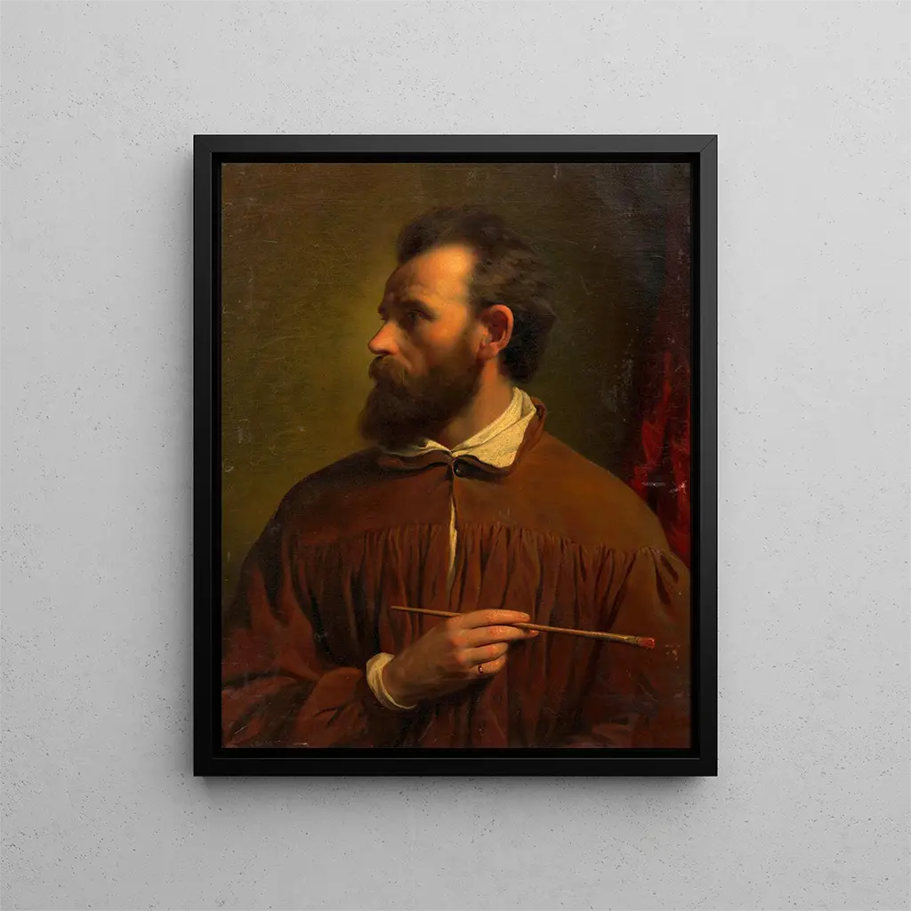 Le style d'Anton Ebert se caractérise par une maîtrise exceptionnelle du portrait, où chaque détail est soigneusement pensé pour transmettre une émotion ou une idée. Dans "Autoportrait von Friedrich von Amerling", Ebert utilise des techniques de clair-obscur qui donnent une dimension presque sculpturale à son sujet. La texture de la peau, le jeu de lumière sur les traits du visage, et la composition harmonieuse créent une atmosphère à la fois intime et solennelle. Ce tableau se démarque par sa capacité à capturer non seulement l'apparence physique, mais aussi l'essence même de l'artiste. Le choix des couleurs, à la fois vives et subtiles, souligne la complexité de la personnalité de Friedrich von Amerling, tout en invitant le spectateur à contempler la dualité de l'être humain, entre vulnérabilité et force.