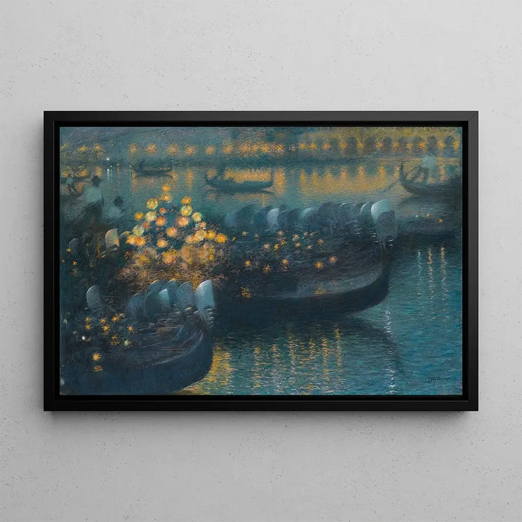 Sérénade au clair de lune à Venise : eine visuelle melodie unter den sternen In dieser kunstdruckversion von "Sérénade au clair de lune à Venise" entführt uns Lucien Lévy-Dhurmer in eine romantische und poetische atmosphäre. Die leinwand, getränkt in sanftes, silbriges licht, ruft die magie der venezianischen nächte hervor. Die spiegelungen auf dem wasser, die silhouetten der gondeln und die historischen gebäude schaffen eine harmonische komposition. Die farben, von tiefblau bis zu silbrigen nuancen, verleihen dem werk eine träumerische dimension. Die technik von Lévy-Dhurmer, die impressionismus und symbolismus verbindet, erweckt diese nächtliche szene zum leben und lädt den betrachter ein, in diese visuelle serenade einzutauchen. Lucien Lévy-Dhurmer: ein meister des symbolismus und des impressionismus Lucien Lévy-Dhurmer, aktiv im späten 19. und frühen 20. jahrhundert, ist ein französischer künstler, der für seine werke bekannt ist, die die schönheit von landschaften und intimen szenerien einfangen. beeinflusst vom symbolismus, verstand er es, eine raffinierte technik mit poetischer sensibilität zu verbinden. Seine arbeit zeichnet sich durch zarte farben und lichtspiele aus, charakteristisch für den impressionismus. Lévy-Dhurmer war auch ein leidenschaftlicher verteidiger der schönheit der natur, was sich in seinen werken widerspiegelt. "Sérénade au clair de lune à Venise" ist ein perfektes beispiel für sein talent, emotionen durch bezaubernde landschaften hervorzurufen. Eine dekorative anschaffung mit vielfältigen vorteilen Dieser kunstdruck von "Sérénade au clair de lune à Venise" ist ein ideales dekoratives stück, um ihr interieur zu bereichern. Ob im wohnzimmer, büro oder schlafzimmer, er verleiht ihrer dekoration eine note von romantik und eleganz. Die druckqualität garantiert eine detailgetreue wiedergabe des originalwerks und ermöglicht es, die magie der szene voll zu genießen. Mit seinem unbestreitbaren ästhetischen reiz wird diese leinwand ihre gäste begeistern und eine beruhigende sowie inspirierende atmosphäre in ihrem wohnraum schaffen.