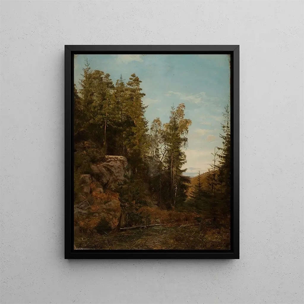 Der Stil von Amaldus Nielsen zeichnet sich durch einen naturalistischen Ansatz aus, aber auch durch eine impressionistische Sensibilität, die seinen Werken eine fast tastbare Dimension verleiht. Die Reproduktion Dienst forstlich Bjelland Mandal - Amaldus Nielsen veranschaulicht diese Dualität perfekt. Licht- und Schattenspiele sowie die Feinheit der Details offenbaren eine unbestreitbare technische Meisterschaft. Die Bäume, das Laub und die Nuancen der Erde sind so präzise wiedergegeben, dass man fast den Duft des Waldes riechen kann. Jedes Element der Komposition scheint zu atmen, als ob die Natur selbst lebendig wäre. Diese stilistische Einzigartigkeit ermöglicht es dem Werk, das einfache Landschaftsbild zu transzendieren und zu einer Ode an die wilde Schönheit und die Ruhe der natürlichen Räume zu werden.