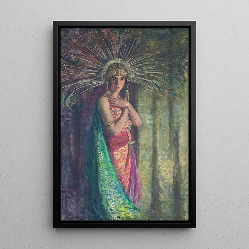 Die kunstdruck von Sheba, ein Werk von Mary Elizabeth Tripe, taucht uns in eine Welt ein, in der Schönheit und Eleganz aufeinandertreffen. Dieses Gemälde, reich an Details, hebt eine Frau mit bemerkenswerter Anmut hervor, umgeben von einer Atmosphäre von Geheimnis und Gelassenheit. Die warmen Farben und die zarten Nuancen der Haut stehen im Kontrast zu den dunklen Elementen des Hintergrunds und schaffen eine beeindruckende Tiefe. Die fotografische Technik von Tripe, die Malerei und Fotografie verbindet, bietet eine einzigartige Textur, die den Blick anzieht und zur Betrachtung einlädt. Jedes Element der Komposition scheint eine Geschichte zu erzählen, die einer Frau, die zugleich stark und verletzlich ist.
