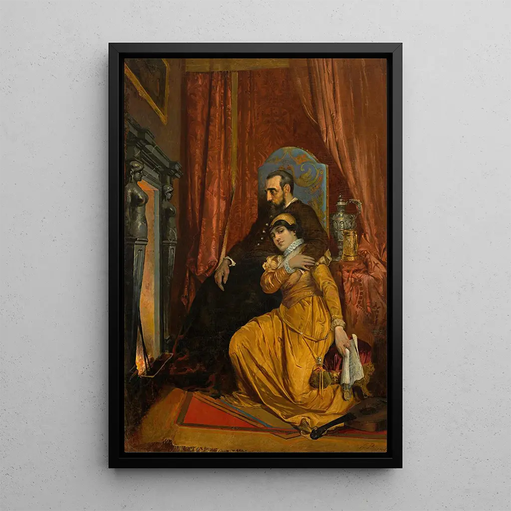 Sigismond Auguste und Barbara Giza: eine Liebes- und Leidenschaftsgeschichte Das Leinwandbild "Sigismond Auguste und Barbara Giza" von Tadeusz Popiel fängt einen kostbaren Moment einer historischen Romanze ein, in dem die Figuren mit beeindruckender emotionaler Intensität dargestellt sind. Die lebendigen Farben und die feinen Details zeugen von der Fähigkeit des Künstlers, eine lebendige und pulsierende Atmosphäre zu schaffen. Die Komposition, die sich auf die beiden Protagonisten konzentriert, vermittelt eine tiefe Verbindung zwischen ihnen, während der subtil verschwommene Hintergrund ihre Liebe hervorhebt. Dieses Werk, sowohl erzählerisch als auch malerisch, entführt den Betrachter in eine Welt, in der Liebe die Zeit überwindet. Tadeusz Popiel: der Künstler im Herzen der historischen Erzählungen Tadeusz Popiel, in Polen geboren, hat sich als unverzichtbarer Künstler des 20. Jahrhunderts etabliert, dank seiner Werke, die von Geschichte und Mythologie inspiriert sind. Seine akademische Ausbildung ermöglichte es ihm, einen einzigartigen Stil zu entwickeln, der Realismus und Romantik verbindet. Beeinflusst von den großen Meistern der Vergangenheit, hat Popiel historische Geschichten mit moderner Sensibilität neu interpretiert. Seine Arbeit an "Sigismond Auguste und Barbara Giza" zeigt eindrucksvoll sein Talent, emotionale Momente einzufangen, während er gleichzeitig den bedeutenden Figuren der polnischen Geschichte Tribut zollt. Eine dekorative Reproduktion mit vielfältigen Vorzügen Die Reproduktion von "Sigismond Auguste und Barbara Giza" ist eine dekorative Wahl, die Ihrem Zuhause einen Hauch von Eleganz und Romantik verleiht. Ob im Wohnzimmer, Esszimmer oder Büro, dieses Bild zieht die Blicke auf sich und weckt Neugier. Die Druckqualität und die Treue zum Originalwerk garantieren ein bereicherndes visuelles Erlebnis. Durch die Hinzufügung dieses Kunstwerks zu Ihrer Sammlung verschönern Sie nicht nur Ihren Raum, sondern laden auch eine faszinierende Geschichte und eine emotional aufgeladene Atmosphäre in Ihren Alltag ein.