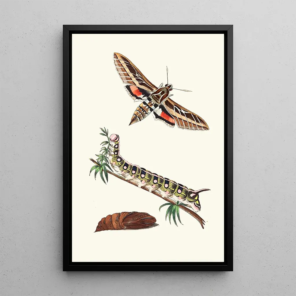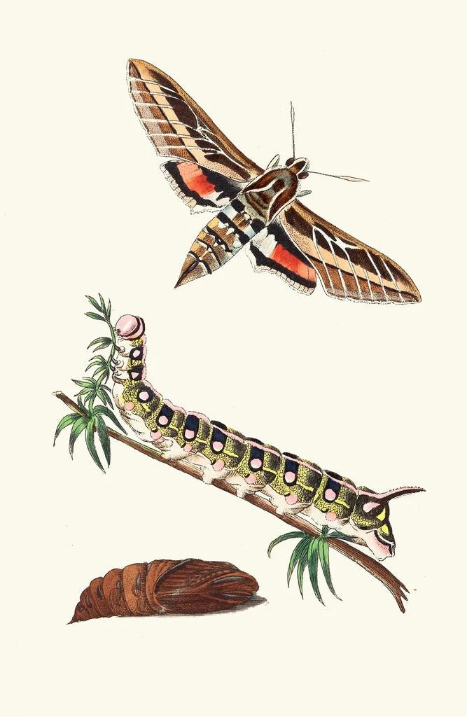 Das Sphinx ligné-Bild von George Shaw entführt uns in eine lebendige Welt, in der die Tierwelt mit einer seltenen Intensität enthüllt wird. Das Werk, das mit leuchtenden Farben und feinen Details gestaltet ist, zeigt einen Schmetterling mit zarten, fast hypnotischen Mustern. Die Aquarelltechnik, meisterhaft angewandt, verleiht der Komposition eine Leichtigkeit und Fließfähigkeit, die den Blick fesseln. Die Atmosphäre, die von diesem Gemälde ausgeht, ruft eine Harmonie zwischen Kunst und Natur hervor und lädt den Betrachter ein, sich an der vergänglichen Schönheit der wilden Natur zu erfreuen.