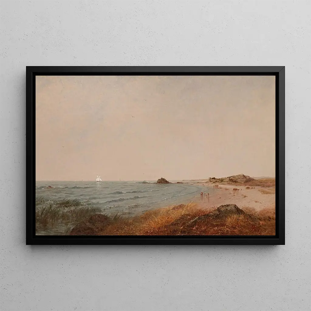 Beverly Beach, Massachusetts : ein Kunstdruck, der Licht und Bewegung einfängt „Beverly Beach, Massachusetts“ ist ein Werk, das die Essenz eines sonnigen Tages am Wasser einfängt. John Frederick Kensett, mit seiner Meisterschaft in Farben und Licht, bietet uns eine lebendige Szene, in der die Wellen den Strand streicheln. Die Nuancen von Blau und Sand verschmelzen zu einem beeindruckenden Kontrast, der die sommerliche Wärme evoziert. Die Technik von Kensett, geprägt von zarten Pinselstrichen, erweckt diesen lebhaften Strand zum Leben, an dem Schwimmer und Segelboote eine dynamische Dimension hinzufügen. John Frederick Kensett: ein Pionier der amerikanischen Landschaftsmalerei John Frederick Kensett, geboren 1816, gilt als einer der führenden Vertreter der Hudson River School, einer künstlerischen Bewegung, die die amerikanischen Landschaften feierte. Beeinflusst von Europa, konnte Kensett Elemente der romantischen Malerei integrieren und gleichzeitig die natürliche Schönheit der Vereinigten Staaten hervorheben. Seine Arbeit war entscheidend für die Etablierung einer Tradition der Landschaftsmalerei, die Licht und Atmosphäre wertschätzt. Kensett war auch ein aktives Mitglied der National Academy of Design und trug zur Entwicklung der amerikanischen Kunst im 19. Jahrhundert bei. Eine dekorative Anschaffung mit vielfältigen Vorzügen Der kunstdruck von „Beverly Beach, Massachusetts“ ist ein perfektes Werk, um Ihr Interieur zu verschönern, sei es im Wohnzimmer, Büro oder Schlafzimmer. Seine Druckqualität garantiert eine bemerkenswerte Treue zu den Details und Farben des Originalwerks und verleiht Ihrem Raum eine sommerliche und fröhliche Atmosphäre. Dieses Bild, mit seiner ästhetischen Anziehungskraft, fügt sich harmonisch in verschiedene Einrichtungsstile ein, vom klassischen bis zum modernen, und lädt zum Träumen und Entfliehen ein.