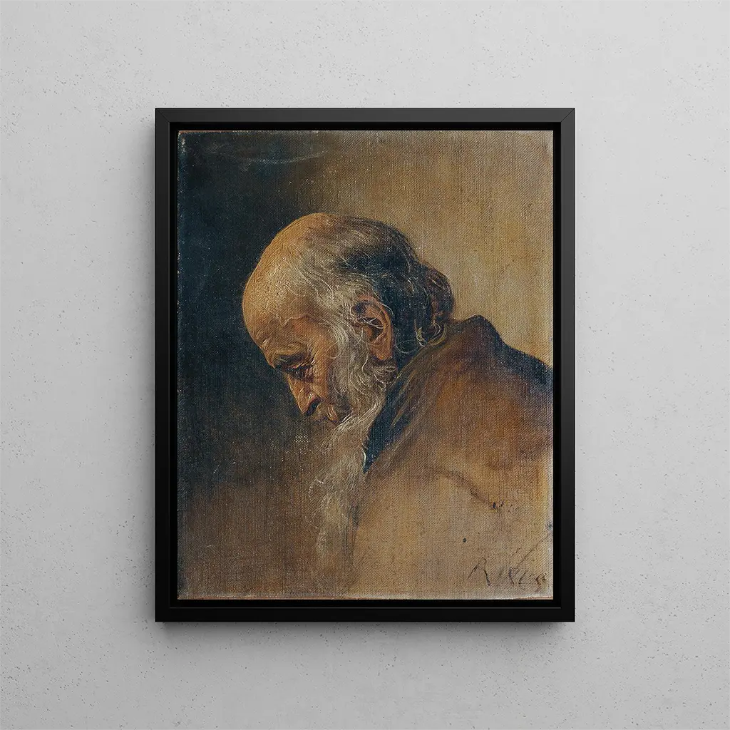 Reproduktion Studie eines alten Mannes - Carl Rahl – Fesselnde Einführung Das Werk "Studie eines alten Mannes" von Carl Rahl ist ein Meisterwerk, das sowohl Weisheit als auch Melancholie evoziert. Dieses Porträt, das die Essenz der vom Lauf der Zeit gezeichneten Züge einfängt, lädt uns ein, in die Intimität einer Figur einzutauchen, deren Lebenserfahrung sich im Gesicht ablesen lässt. Die Tiefe der durch diese Darstellung vermittelten Emotionen geht über den rein ästhetischen Aspekt hinaus und berührt das Universelle. Der Künstler schafft es, eine Verbindung zwischen Betrachter und Subjekt herzustellen, wodurch die Beobachtungserfahrung zutiefst berührend wird. In dieser Studie erzählt jede Falte, jeder Schatten eine Geschichte, ein Leben voller Erfahrungen und Überlegungen. Stil und Einzigartigkeit des Werks Die Originalität von "Studie eines alten Mannes" liegt in der technischen Meisterschaft von Carl Rahl, der Licht und Schatten nutzt, um die Gesichtszüge zu betonen. Die Farbpalette, subtil und nuanciert, verleiht eine Atmosphäre, die sowohl sanft als auch melancholisch ist. Rahl beschränkt sich nicht darauf, die physischen Merkmale seines Modells zu reproduzieren; er versucht, die Seele des Individuums einzufangen. Die minutösen Details, wie die Falten und Ausdrücke, werden mit besonderer Sorgfalt behandelt und offenbaren eine seltene Sensibilität. Diese Liebe zum Detail, verbunden mit einer harmonischen Komposition, ermöglicht es dem Werk, sich in der künstlerischen Landschaft des 19. Jahrhunderts hervorzuheben. Die Art, wie das Licht das Gesicht des alten Mannes streichelt, wirkt fast lebendig und schafft eine Dynamik zwischen Subjekt und Betrachter, die diesen einlädt, die Tiefe der menschlichen Existenz zu contemplieren. Der Künstler und sein Einfluss Carl Rahl, eine ikonische Figur des deutschen Romanticismus, hat seine Epoche mit kraftvollen und evocativen Werken geprägt. In einem künstlerischen Umfeld aufgewachsen, wurde er von den großen Meistern der Malerei beeinflusst, entwickelte jedoch einen eigenen Stil, der Realismus und Idealisierung verbindet. Seine Fähigkeit, menschliche Emotionen mit solcher Intensität darzustellen, machte ihn zu einem respektierten und bewunderten Künstler. Rahl war auch ein Pionier bei der Integration historischer und mythologischer Themen in seine Werke, was ihm ermöglichte, reiche und komplexe narrative Dimensionen zu erkunden. Sein Einfluss zeigt sich noch immer.