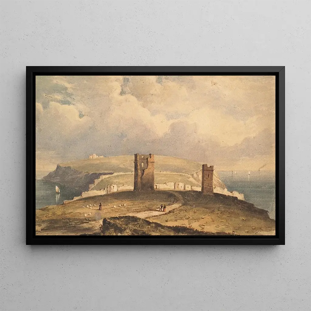 In dieser Kunstdruckversion von "Küstenlandschaft mit Ruinen" entführt uns William Wyld an einen Strand, an dem die Zeit stillzustehen scheint. Die Ruinen, Überreste einer vergangenen Epoche, ragen majestätisch gegen einen bewölkten Himmel empor, während die Wellen sanft den Strand küssen. Die Farbpalette, geprägt von Blau- und Grautönen, vermittelt eine Atmosphäre, die zugleich ruhig und nostalgisch ist. Wylds Technik, die gekonnt Aquarell und Öl verbindet, erweckt diese Szene zum Leben und schafft ein Lichtspiel, das die Schönheit der architektonischen Details und die Fließfähigkeit des Meeres betont.