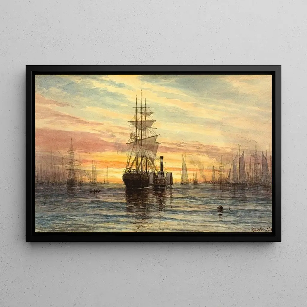 Szenen am Hafen: eine maritime Melodie in lebendigen Farben Die kunstdruck Szenen am Hafen von Thomas Moran entführt uns in eine lebendige und dynamische Atmosphäre, in der sich die Nuancen von Blau und Grün harmonisch vermischen, um das Meer und den Himmel zu beschreiben. Die weißen Segel der Boote heben sich vor dem farbigen Hintergrund ab und schaffen einen beeindruckenden Kontrast, der den Blick anzieht. Moran, Meister des Lichts, spielt mit den Reflexionen auf dem Wasser und macht die Szene fast lebendig. Jedes Detail, von den Wellen bis zu den Silhouetten der Seeleute, ist sorgfältig wiedergegeben und lädt den Betrachter ein, die Bewegung und Energie dieses lebhaften Hafens zu spüren. Thomas Moran: ein Pionier der amerikanischen Landschaftsmalerei Thomas Moran, geboren 1837, ist eine ikonische Figur der amerikanischen Kunstbewegung des 19. Jahrhunderts, bekannt für seine großartigen Landschaften und Darstellungen der Natur. Beeinflusst von europäischen Landschaften und der wilden Schönheit der Vereinigten Staaten, konnte er die Essenz der Orte, die er malte, einfangen. Moran spielte eine Schlüsselrolle bei der Förderung der amerikanischen Nationalparks, insbesondere Yellowstone, durch seine Werke. Sein Stil, geprägt von leuchtenden Farben und einer sorgfältigen Detailarbeit, markierte eine Epoche, in der sich die amerikanische Kunst zu definieren und auf der Weltbühne zu behaupten begann. Eine dekorative Anschaffung mit vielfältigen Vorzügen Der kunstdruck des Gemäldes Szenen am Hafen ist ein ideales Dekorationsstück, um Ihr Zuhause zu bereichern, sei es im Wohnzimmer, im Büro oder im Schlafzimmer. Seine Druckqualität und seine Treue zu den Originalfarben machen ihn zu einer attraktiven Wahl für Kunstliebhaber und Liebhaber maritimer Landschaften. Durch die Integration dieses Leinwandbildes in Ihre Dekoration verleihen Sie Ihrem Raum einen Hauch von Eleganz und Ruhe. Seine ästhetische Anziehungskraft und seine lebendige Atmosphäre werden Ihre Gäste begeistern und eine warme, einladende Stimmung schaffen.