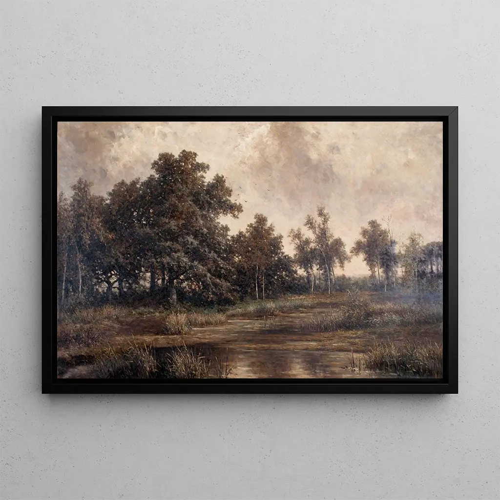 Étang dans la Campine : ein Gemälde der natürlichen Ruhe Der Étang dans la Campine von Euphrosine Beernaert ist ein Werk, das die Ruhe und die Schönheit belgischer Landschaften evoziert. Das Leinwandbild fängt einen friedlichen Teich ein, umgeben von üppigem Grün und zarten Spiegelungen auf dem Wasser. Die Nuancen von Grün und Blau verschmelzen harmonisch und schaffen eine beruhigende und kontemplative Atmosphäre. Die Technik von Beernaert, geprägt von einer impressionistischen Sensibilität, ermöglicht es, die Sanftheit des Lichts und das Murmeln der Natur zu spüren. Dieses Werk lädt dazu ein, in eine Welt der Ruhe und Schönheit einzutauchen, in der jedes Detail die Pracht der Landschaft feiert. Euphrosine Beernaert : eine Künstlerin im Herzen der Natur Euphrosine Beernaert, aktiv gegen Ende des 19. Jahrhunderts und zu Beginn des 20. Jahrhunderts, ist eine belgische Künstlerin, die oft mit der impressionistischen Bewegung in Verbindung gebracht wird. Ihre Leidenschaft für die Natur und ihr Talent, Licht und Farben einzufangen, machen sie zu einer bedeutenden Persönlichkeit ihrer Zeit. Beernaert hat häufig Landschaften ihrer Heimatregion, der Campine, gemalt und dabei die Schönheit oft vernachlässigter Orte hervorgehoben. Ihre Werke, darunter der Kunstdruck in der Campine, zeugen von einer einzigartigen Sensibilität und einer tiefen Verbindung zu ihrer Umwelt, was ihr ermöglichte, sich in der Kunstwelt hervorzuheben. Eine dekorative Anschaffung mit vielfältigen Vorzügen Der Kunstdruck von Étang dans la Campine ist eine ideale Wahl, um Ihr Zuhause zu verschönern, sei es im Wohnzimmer, im Büro oder im Schlafzimmer. Seine Druckqualität und die Beibehaltung der originalen Nuancen machen ihn zu einem hochwertigen Dekorationsstück. Durch die Integration dieses Gemäldes in Ihre Dekoration bringen Sie einen Hauch von Natur und Ruhe in Ihren Lebensraum. Dieses Werk mit seiner friedlichen Atmosphäre lädt zur Entspannung und Kontemplation ein und verleiht Ihrer Umgebung gleichzeitig eine künstlerische und warme Note. Die Wahl dieses Kunstdrucks ist eine Einladung zur täglichen Ruhe.