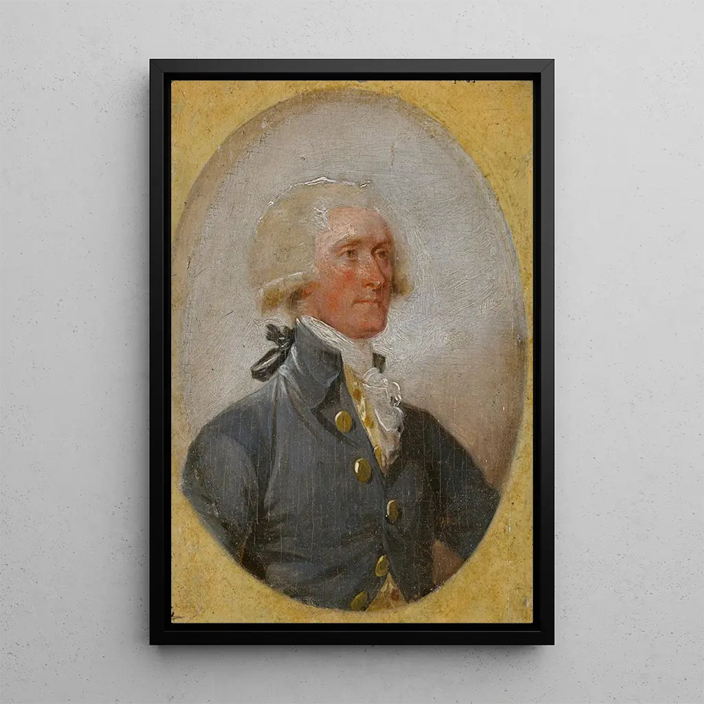 "Thomas Jefferson", ein ikonisches Werk von John Trumbull, zeigt den dritten Präsidenten der Vereinigten Staaten mit bemerkenswerter Intensität. Das Gemälde offenbart einen nachdenklichen Jefferson, dessen Blick in den Horizont gerichtet ist und seine Vision für die Zukunft der Nation symbolisiert. Die dezenten Farben und das Lichtspiel betonen sein Gesicht, während der neutrale Hintergrund die Aufmerksamkeit auf seine Persönlichkeit lenkt. Trumbull verwendet eine realistische kunstdruck-Technik, die nicht nur die physischen Züge einfängt, sondern auch die Essenz des Mannes – einen Intellektuellen und Visionär. Dieses Bild ist ein wahres Fenster zur amerikanischen Geschichte.