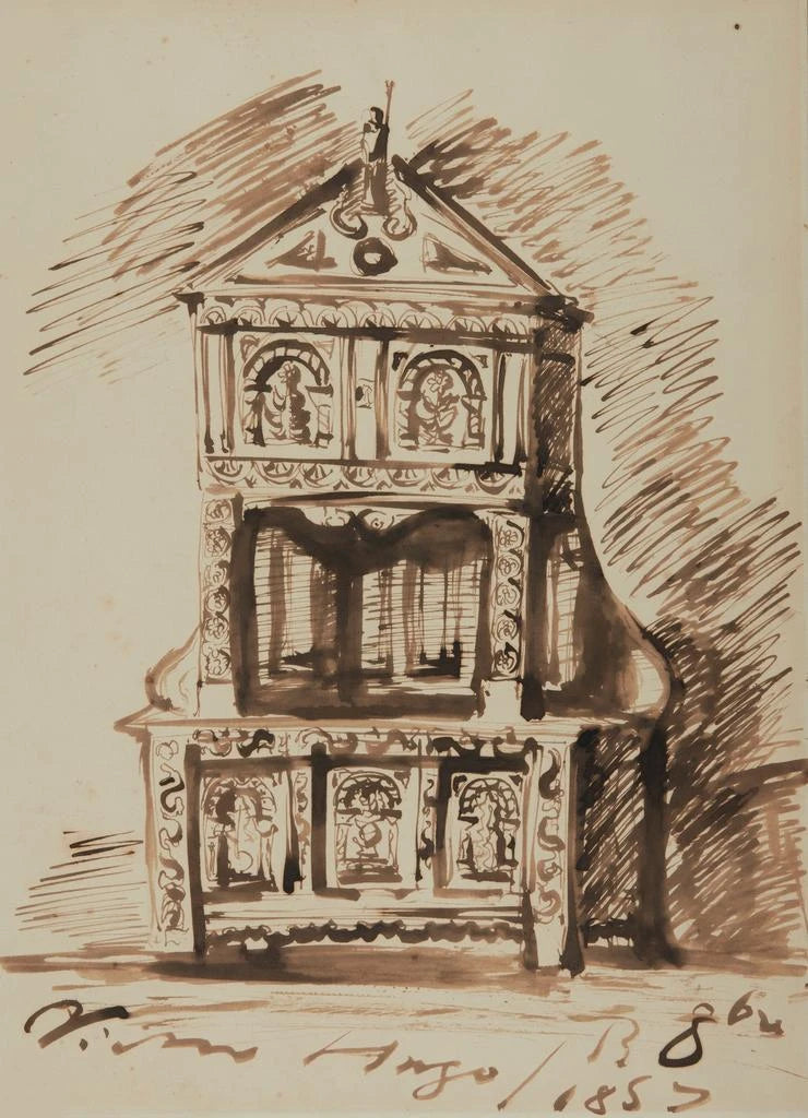 Victor Hugo, berühmter Schriftsteller und Dichter des 19. Jahrhunderts, ist auch für sein Talent als Maler bekannt. Vom romantischen Bewegung beeinflusst, konnte er das Wesen seiner Zeit durch seine Werke einfangen. Obwohl er hauptsächlich für seine Romane wie "Les Misérables" bekannt ist, erforschte Hugo die Malerei als ergänzendes Ausdrucksmittel. Sein Stil, geprägt von Leidenschaft und Emotion, spiegelt die Turbulenzen seiner Zeit wider und feiert gleichzeitig die Schönheit von Natur und Handwerkskunst. "Ein Buffet" ist Teil dieser Suche nach Schönheit und zeugt von der Bedeutung der Kunst im Alltag.