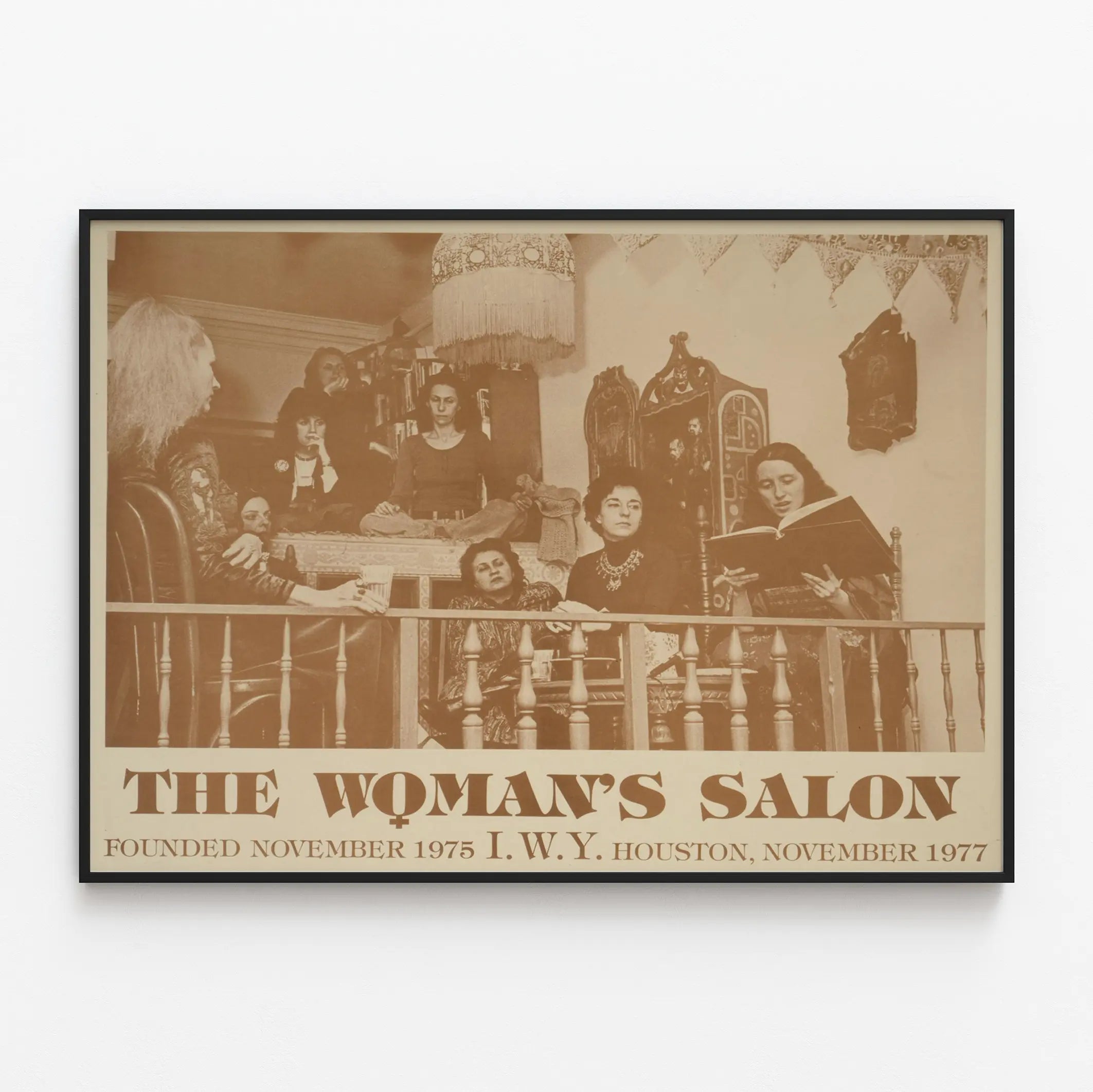 Dieses Vintage-Poster mit dem Titel „Der Frauensalon“ fängt eine intime und geschichtsträchtige Szene ein, die eine Gruppe von Frauen in einem Salon zeigt, vermutlich in Houston im November 1977. Dieses sepiafarbene Plakat strahlt eine warme und authentische Atmosphäre aus und hebt einen bedeutenden Moment des Zusammenkommens und Austauschs zwischen Frauen hervor, wahrscheinlich im Rahmen eines Dialogs oder gemeinsamer Studien. Als Wanddekoration verleiht dieses Poster Ihrem Zuhause einen retro- und feministischen Akzent, ideal für Liebhaber sozialer Geschichte und Vintage-Designs. Das Design betont die subtile Interaktion zwischen den Teilnehmerinnen, ihre konzentrierten Haltungen und ernsten Mienen, die einen tiefgehenden Austausch widerspiegeln. Das monochrome Farbkonzept unterstreicht die zeitlose Qualität dieses Bildes, perfekt für Wohnzimmer, Arbeitszimmer oder Leseecken. Dieses Wandbild, obwohl hier in Form eines Posters präsentiert, fügt sich nahtlos in eine Sammlung vintage- und geschichtsträchtiger Wanddekorationen ein und bietet eine einzigartige erzählerische Dimension. Ob zur Gestaltung einer Bibliothek, eines Arbeitsbereichs oder eines Raumes für Reflexion – dieses dekorative Element vermittelt sowohl Ruhe als auch kollektive Stärke und präsentiert sich als charaktervolles Stück. Sein großzügiges Format sorgt für optimale Sichtbarkeit und einen eindrucksvollen Wand-Effekt, verstärkt durch die Details der Möbel und dekorativen Elemente im Hintergrund, die eine unbestreitbare visuelle Authentizität hinzufügen. Dieses Poster richtet sich sowohl an Liebhaber klassischer Wanddekorationen als auch an Sammler von Stücken, die eine starke Geschichte erzählen, insbesondere im Bereich der Frauenrechte und -treffen. Verleihen Sie Ihrem Zuhause eine Atmosphäre, die sowohl historisch als auch inspirierend ist, mit diesem Poster „Der Frauensalon“, einem visuellen Zeugnis einer Epoche, die von Teilen und Emanzipation geprägt war.