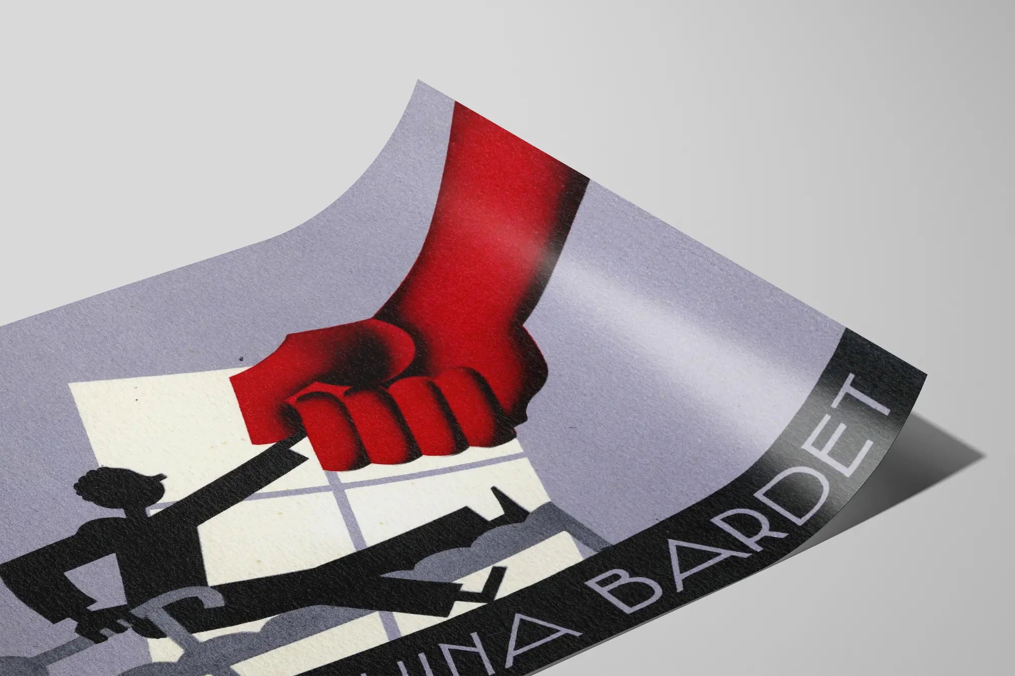 Bringen Sie mit diesem Vintage-Poster Quinquina Bardet, einem Klassiker der Retro-Wanddekoration, einen Hauch von Eleganz und Nostalgie in Ihr Zuhause. Dieses Plakat besticht durch eine einzigartige grafische Komposition, die eine schwarze Silhouette einer Figur zeigt, die auf einem stilisierten Sessel in einem minimalistischen Rahmen mit Grautönen und Violett sitzt. Die große rote Hand, die von der rechten Seite her vorrückt, schafft einen auffälligen Kontrast und zieht sofort den Blick auf sich. Der klare grafische Stil und die intensiven Farben erinnern an die Werbeplakate des frühen 20. Jahrhunderts und sind ideal für alle, die ein sehr visuelles Kunstwerk in ihre Inneneinrichtung integrieren möchten.