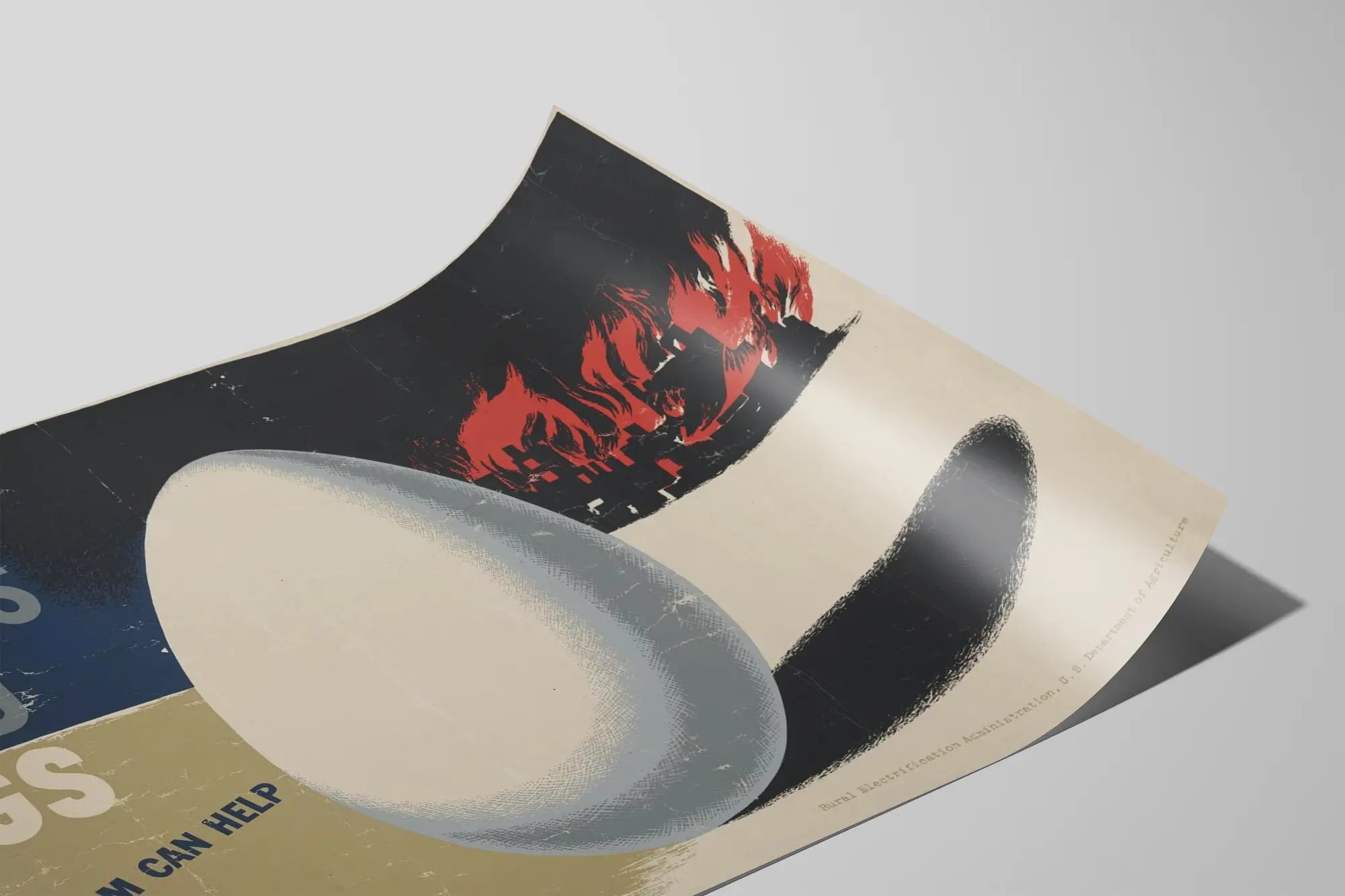 Entdecken Sie dieses Vintage-Poster mit markantem grafischem Stil, ideal für Liebhaber der Wanddekoration mit historischem Touch. Dieses Plakat hebt ein Ei in der Mitte hervor, das den wesentlichen Beitrag der Verbündetenhöfe symbolisiert, vor einem Hintergrund in gedeckten Farben, dominiert von Marineblau, Beige und Weiß. Der Text „Unsere Verbündeten brauchen Eier – Ihr Bauernhof kann helfen“ begleitet die Abbildung und verstärkt die engagierte und patriotische Botschaft. Im Hintergrund erinnern rote Flammen an einen Konflikt- oder Krisenkontext und verleihen dieser Wanddekoration eine kraftvolle und ausdrucksstarke Dimension.