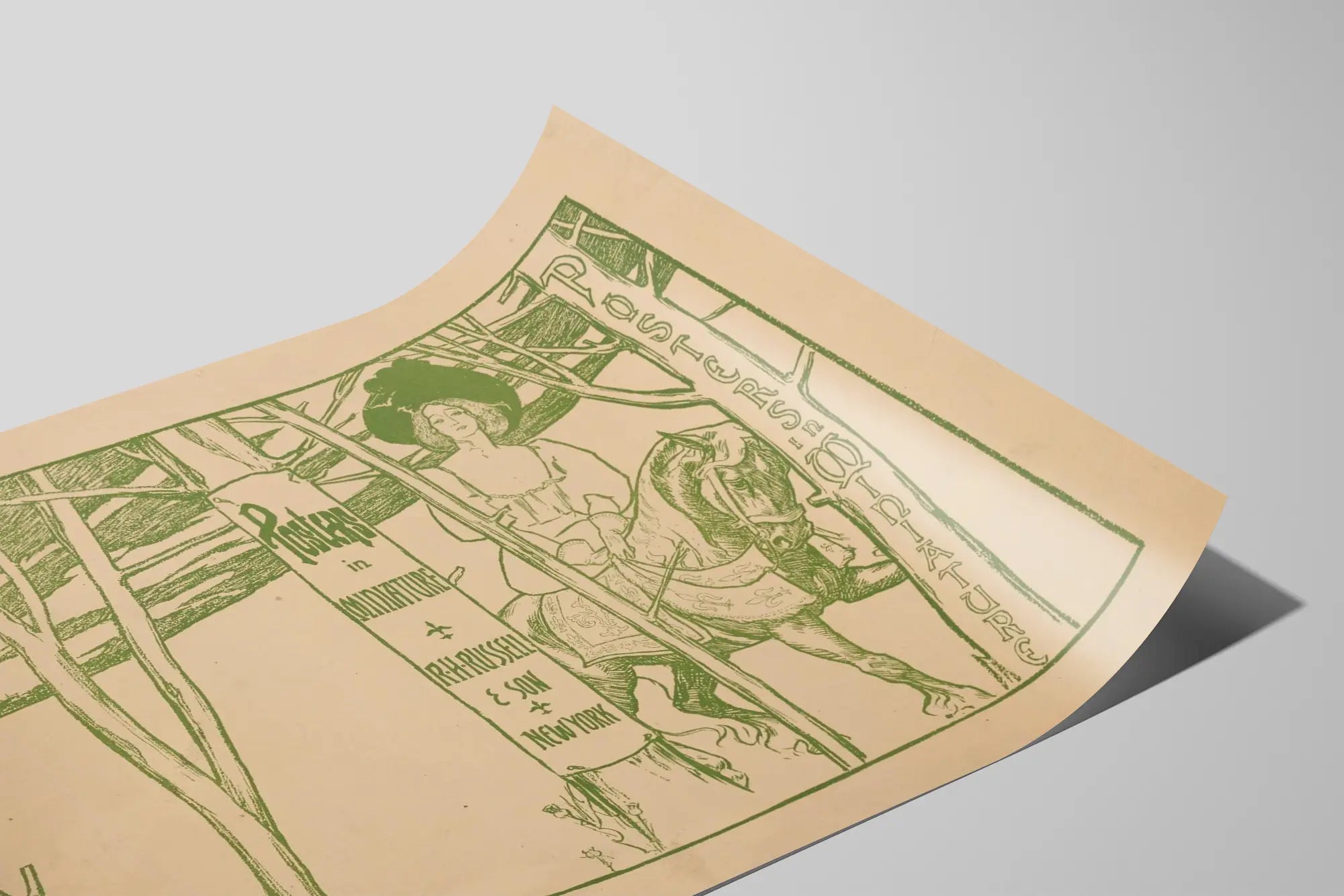 Entdecken Sie dieses Vintage-Poster im Retro-Stil mit dem Titel „Miniaturposter“, perfekt für eine originelle und elegante Wanddekoration. Dieses Poster reproduziert eine zarte Zeichnung, die eine Frau auf einem Pferd in einem Wald zeigt, umgeben von feinen Bäumen und einer Stadt im Hintergrund, alles in Grüntönen auf cremefarbenem Hintergrund. Sein detailliertes Design erinnert an die Ästhetik alter Plakate, mit präzisen Linien und kunstvoller Grafikarbeit, die Liebhaber klassischer und künstlerischer Wandgestaltung begeistern wird. Dieses Poster eignet sich ideal für eine Inszenierung in einem Raum, der eine authentische und einzigartige Note sucht, sei es im Wohnzimmer, Schlafzimmer oder Büro. Das Thema, das Natur und Figur verbindet, schafft eine Atmosphäre, die zugleich ruhig ist und an eine vergangene Welt erinnert, mit einem fesselnden und harmonischen visuellen Effekt. Dank seiner passenden Maße lässt sich dieses Vintage-Poster mühelos in eine Sammlung alter Plakate oder in eine Mischung verschiedener grafischer Stile integrieren, verleiht Ihren Wänden Charme und Charakter. Dieses einzigartige Stück spiegelt die Kunst der grafischen Werbung vergangener Zeiten wider und schafft eine nostalgische Stimmung, ideal für Liebhaber anspruchsvoller und origineller Wanddekoration. Wählen Sie dieses Vintage-Poster „Miniaturposter“, um Ihr Zuhause mit einem Werk zu bereichern, das feine Zeichnung und eleganten Retro-Stil vereint – eine perfekte Wahl, um eine leere Wand aufzuwerten oder eine Galerie authentischer und charaktervoller Bilder zu vervollständigen.
