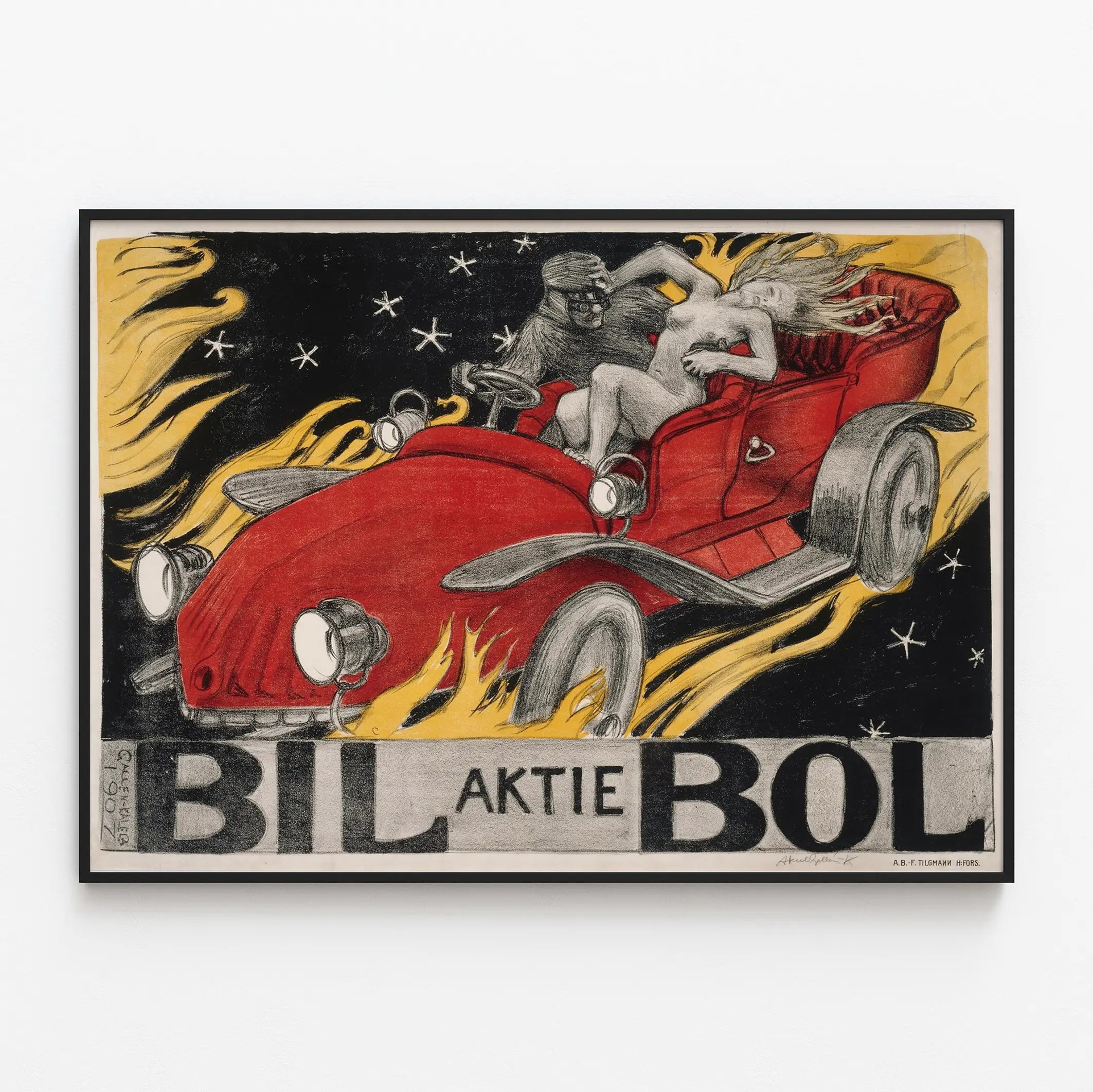 Vintage-Werbeplakat Bil Bol für rotes Auto