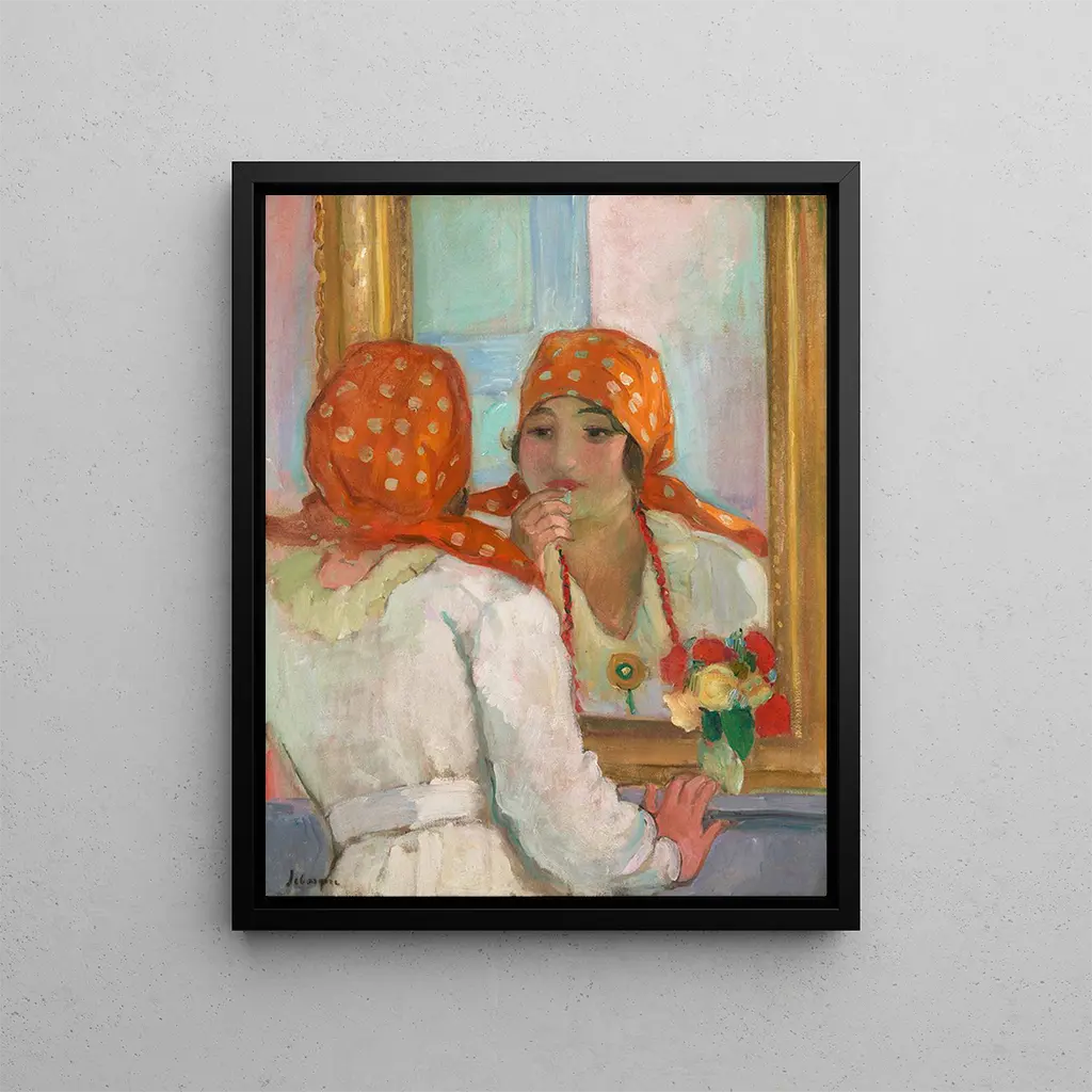 Henri Lebasque, französischer Maler, ist bekannt für seine Darstellungen des Alltagslebens und lebendige Porträts. 'Vor dem Spiegel' ist ein Werk, das die Essenz der Weiblichkeit durch die Darstellung einer Frau, die sich im Spiegel betrachtet, einfängt. Das Licht, das sich auf den Oberflächen spiegelt, und die lebendigen Farben, die Lebasque verwendet, schaffen eine Atmosphäre, die sowohl intim als auch fröhlich ist. Dieses Gemälde, das Anfang des 20. Jahrhunderts entstanden ist, zeigt nicht nur das Talent des Künstlers, Schönheit einzufangen, sondern auch seine Fähigkeit, Emotionen durch Komposition und Farbe hervorzurufen. Im aktuellen Kontext der Inneneinrichtung könnte dieses Werk jedem Raum einen Hauch von Eleganz und Raffinesse verleihen. Kunstliebhaber werden die Art und Weise schätzen, wie Lebasque mit Licht und Schatten spielt und so ein fesselndes visuelles Erlebnis bietet. Eine Einladung, dieses Werk auf Artem Legrand zu entdecken.
