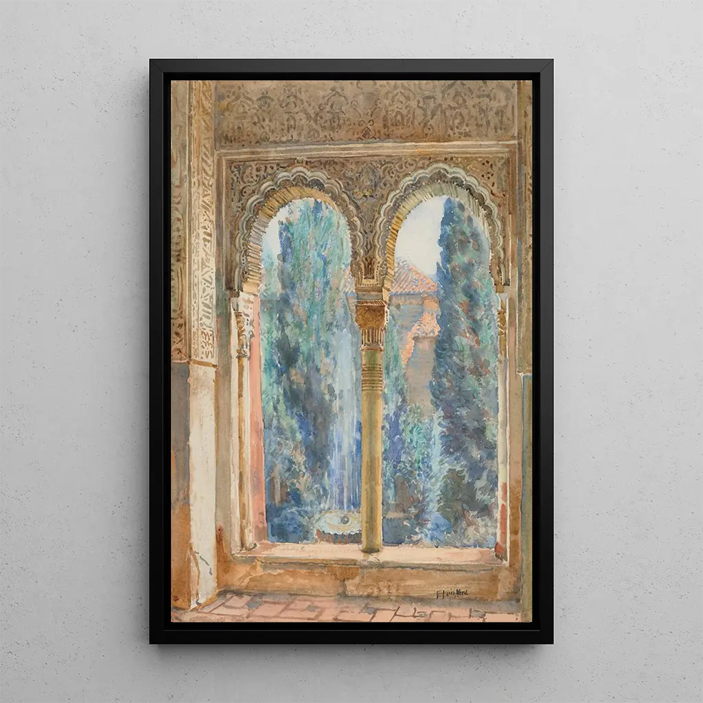 In "Vue d'une cour" fängt Francis Luis Mora die Essenz eines friedlichen Moments ein, bei dem das sanfte Sonnenlicht auf die Wände und Pflastersteine spielt. Die warmen, erdigen Farben vermitteln eine einladende Atmosphäre, während die detaillierten Darstellungen der Figuren und Gegenstände einen Hauch von Realismus verleihen. Die ausgewogene und harmonische Komposition lädt den Betrachter ein, in diese intime Szene einzutauchen, in der jedes Element eine Geschichte zu erzählen scheint. Der Einsatz von Licht und Schatten schafft eine Tiefe, die den Blick anzieht und die Betrachtung des in diesem Raum erblühenden Lebens fördert.
