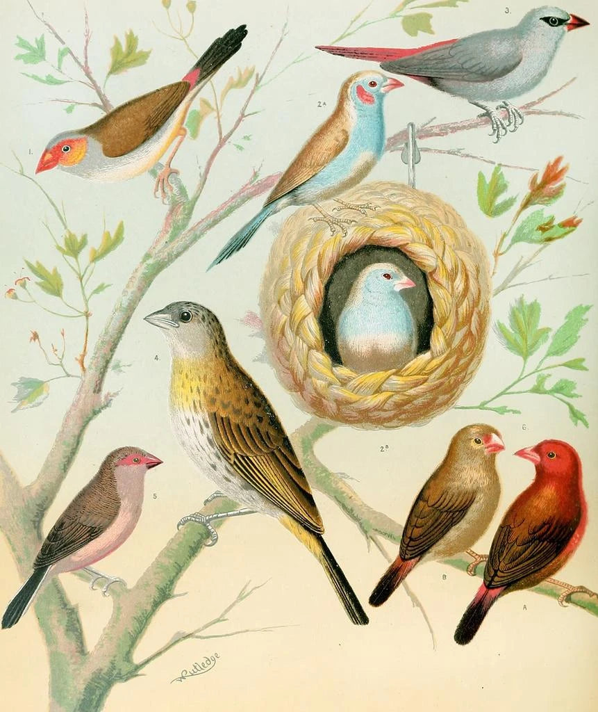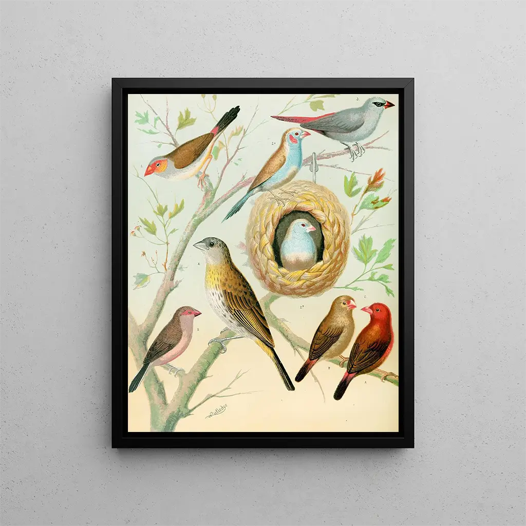 Gemälde Waxbills, Safran-Pinson und Feuerpinson aus Afrika - W. A. Blakston | Kunstdruck