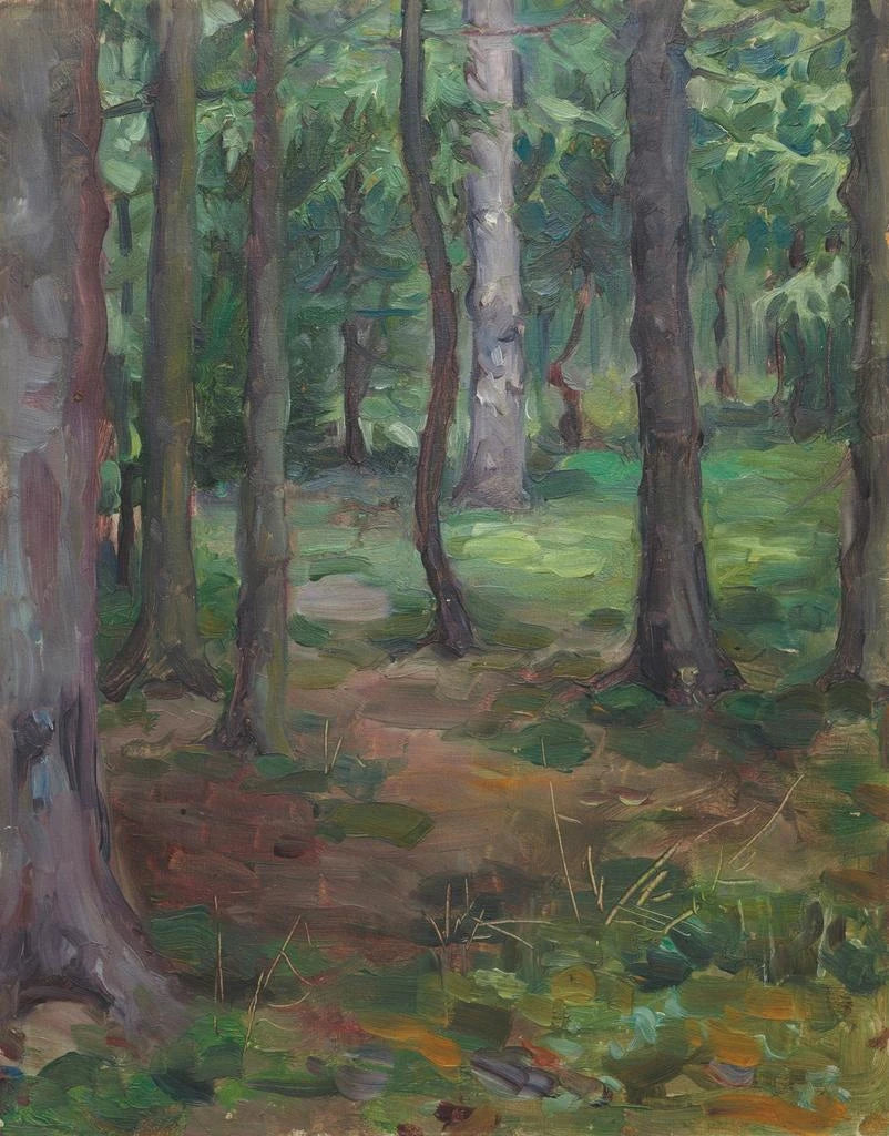 Entdecken Sie das atemberaubende Gemälde „Forêt“ von Maria Yakunchikova, einem Meisterwerk der russischen Symbolismusbewegung. Dieses faszinierende Kunstwerk fängt die mystische Schönheit eines Waldes in einer einzigartigen Mischung aus lebendigen Farben und feinen Details ein.