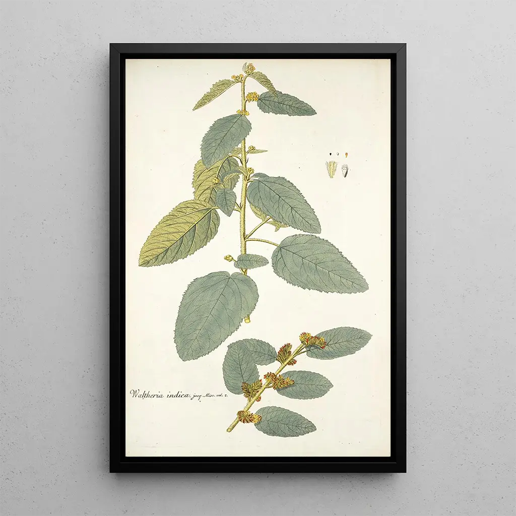 Die reproduction von Waltheria indica entführt uns in eine üppige Welt, in der die Zartheit der Blumen und die Farbvielfalt aufeinandertreffen. Das Werk von Nikolaus Joseph Freiherr von Jacquin fängt die feinen Nuancen dieser tropischen Pflanze mit Feinfühligkeit ein und evoziert eine Atmosphäre von Frische und Exotik. Die detaillierten Details, von den Blütenblättern bis zu den Blättern, werden mit einer Präzision wiedergegeben, die tiefen Respekt vor der Natur zeigt. Die Farbpalette, die zwischen tiefem Grün und leuchtendem Gelb schwankt, schafft eine visuelle Harmonie, die zur Kontemplation und Flucht einlädt.