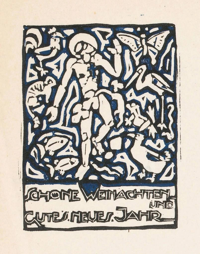 Weihnachtskarte mit einer menschlichen Figur und Tieren - Reijer Stolk