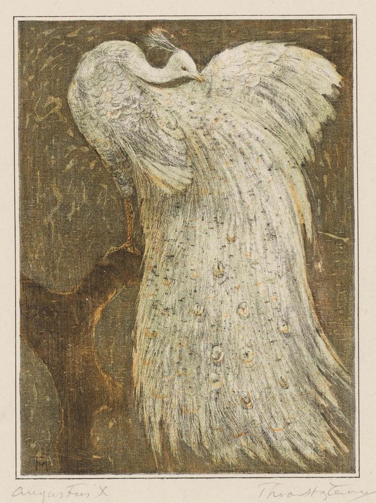 Weißer Pfau auf einem Zweig - Theo van Hoytema Source: Paon blanc sur une branche - Theo van Hoytema