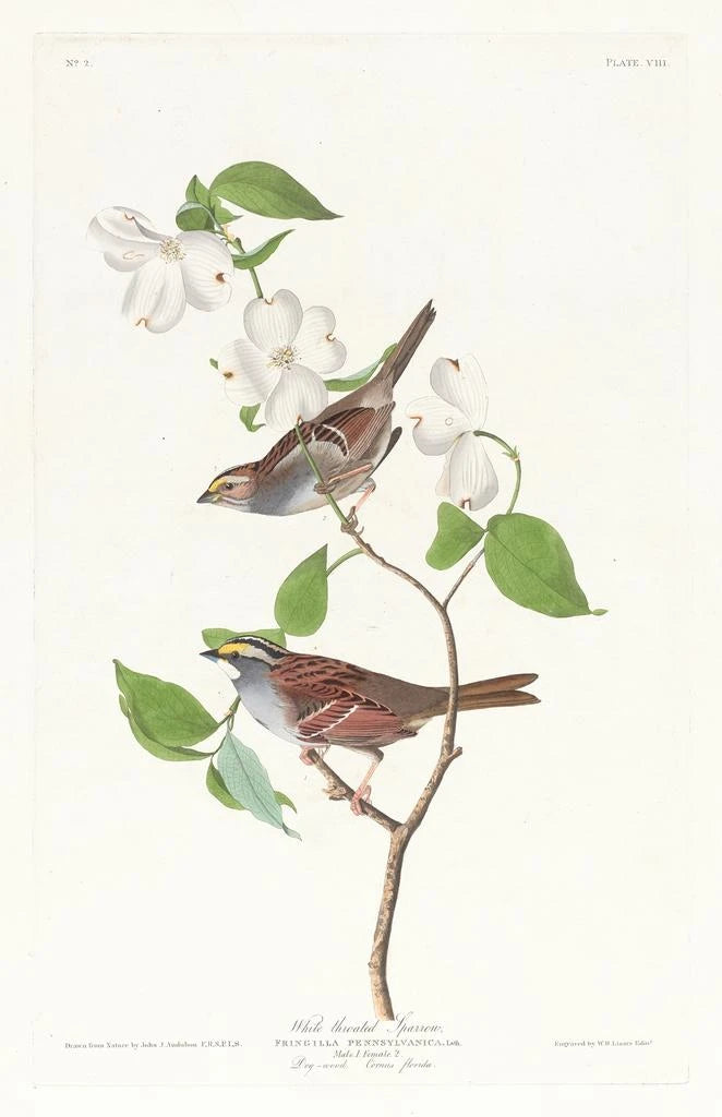 Das "Bruant à gorge blanche" von John James Audubon ist eine wahre Ode an die Schönheit der Vogelwelt. Mit lebendigen Farben und einer sorgfältig ausbalancierten Komposition fängt dieses Werk die Essenz des Vogels in seinem natürlichen Lebensraum ein. Die detaillierten Feinheiten seines Gefieders, von sanften Tönen bis hin zu auffälligen Kontrasten, vermitteln eine Atmosphäre von Gelassenheit und Lebendigkeit. Die Aquarelltechnik, kombiniert mit präzisem Zeichnen, ermöglicht es Audubon, nicht nur das Aussehen des Vogels, sondern auch seinen lebendigen Charakter zu übertragen. Jeder Pinselstrich scheint dieser Kreatur eine Seele einzuhauchen und lädt den Betrachter ein, die Schönheit der Natur zu bewundern.