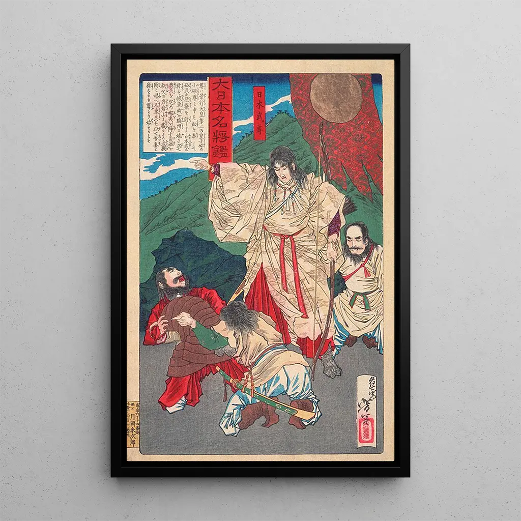In diesem fesselnden kunstdruck wird Yamato Takeru no Mikoto in seiner ganzen Pracht dargestellt, wie er seinen Bogen mit spürbarer Entschlossenheit hebt. Die lebendigen Farben und die detaillierten Rüstungsdetails vermitteln eine Atmosphäre von Tapferkeit und Geheimnis. Die dynamische Komposition zieht den Blick auf sich und hebt die Bewegung des Charakters hervor, als ob er sich auf ein episches Abenteuer vorbereitet. Tsukioka Yoshitoshi, Meister des japanischen Holzschnitts, gelingt es, das Wesen dieses mythologischen Helden einzufangen und eine Kampfszene in ein lebendiges und ausdrucksstarkes Kunstwerk zu verwandeln.