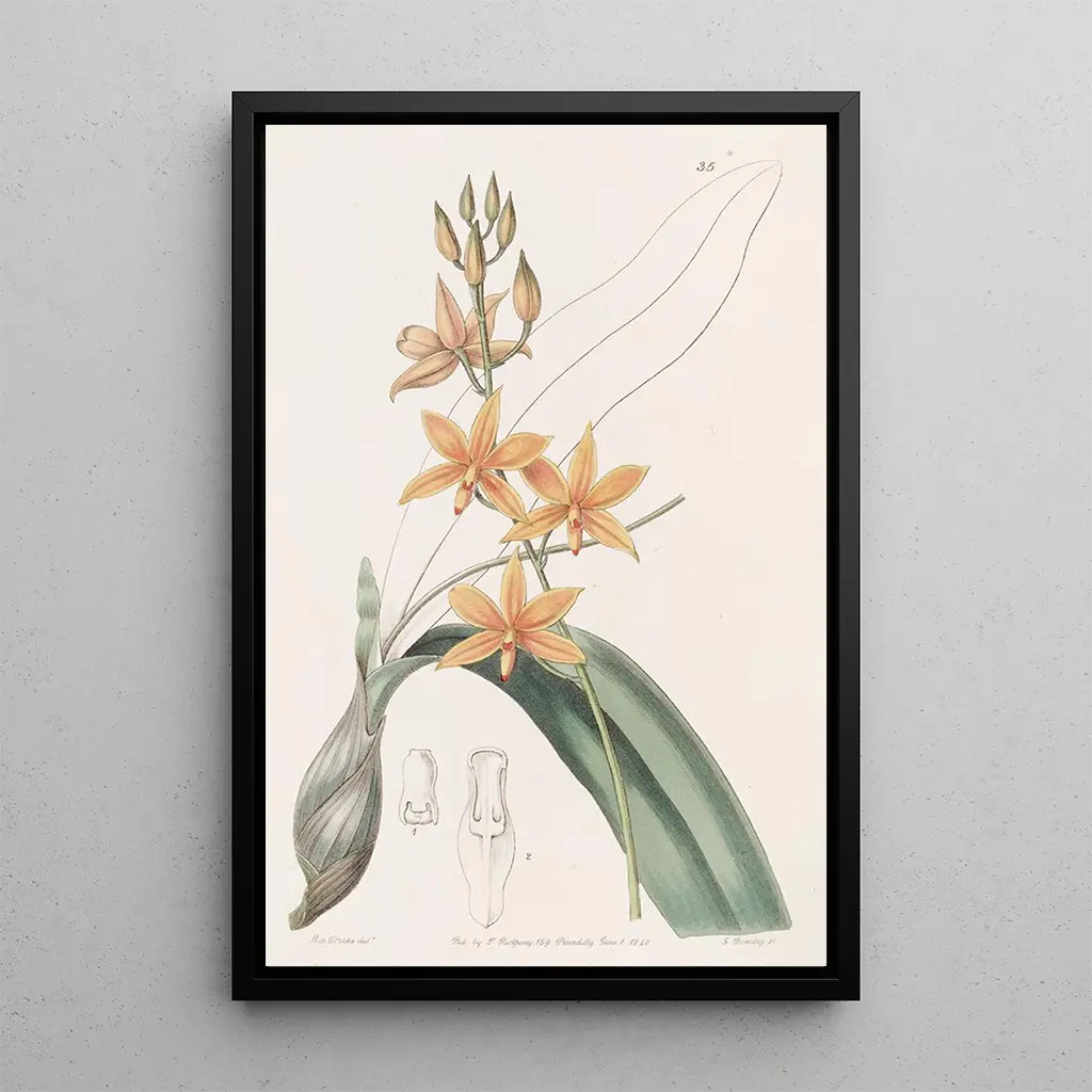 In dieser kunstdruck von Yolkofegg Epidendrum wird der Betrachter sofort von der Explosion lebendiger Farben und der Zartheit der Details fasziniert. Die Nuancen von Gelb, Grün und Violett vermischen sich harmonisch und schaffen eine Atmosphäre, die sowohl fröhlich als auch beruhigend ist. Die Aquarelltechnik, die von Sydenham Edwards verwendet wird, ermöglicht es, die Leichtigkeit der Blütenblätter und die Transparenz der Blätter wiederzugeben und diesem botanischen Werk Leben einzuhauchen. Jedes Element scheint im Licht zu tanzen und lädt den Betrachter ein, in eine reiche und lebendige Naturwelt einzutauchen.