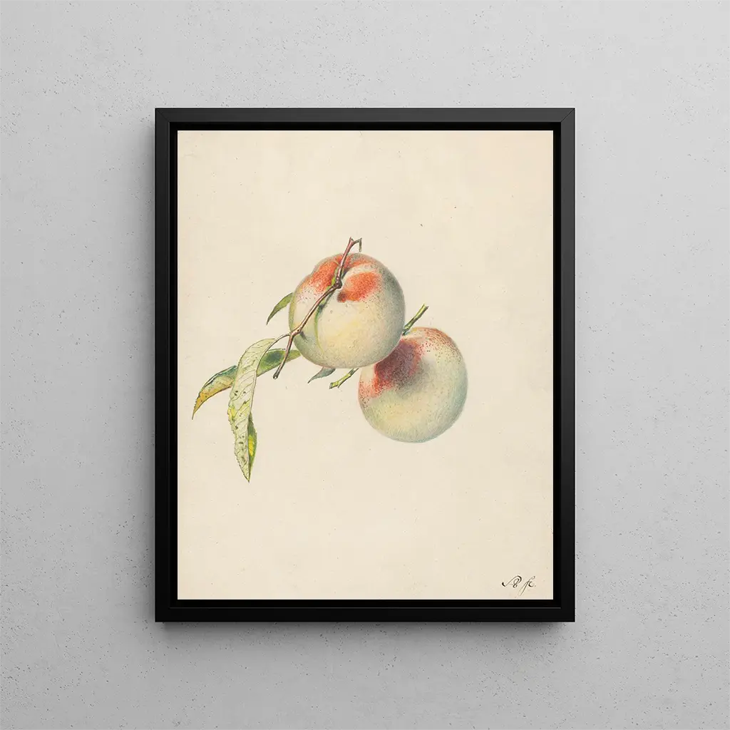 Die Integration des Kunstdrucks "Zwei Pfirsiche an ihren Stielen - Albertus Steenbergen" in Ihr Zuhause bedeutet, eine zeitlose Eleganz in Ihre Wandgestaltung zu bringen. Dieses Werk, das gleichzeitig eine Hommage an die
