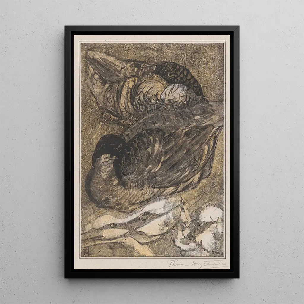 Der kunstdruck von "Zwei ruhende Enten" ist ein dekoratives Stück, das perfekt ist, um eine Atmosphäre der Gelassenheit in Ihrem Zuhause zu schaffen. Ob im Wohnzimmer, Büro oder Schlafzimmer, dieses Bild lädt zur Entspannung und zum Nachdenken ein. Die Qualität der reproduction garantiert eine Treue zu den Farben und Details des Originalwerks, während sie gleichzeitig eine ästhetische Dimension zu Ihrer Dekoration hinzufügt. Mit seinem subtilen Charme und seiner beruhigenden Atmosphäre wird diese Leinwand alle Kunst- und Naturliebhaber begeistern und ist die ideale Wahl, um Ihren Wohnraum zu bereichern.