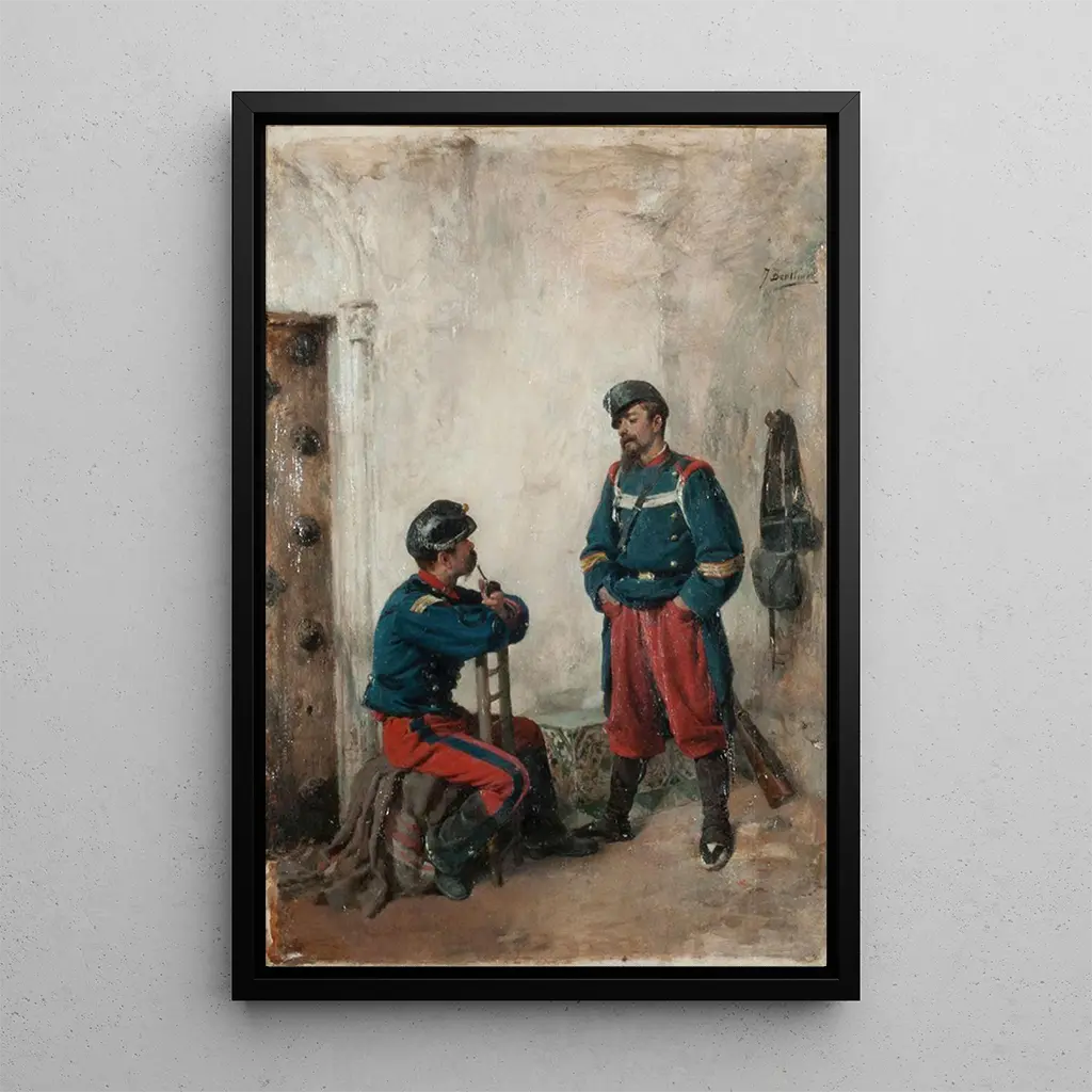 Deux Soldaten: eine Hommage an Mut und Kameradschaft In dem Werk "Deux soldats" fängt José Benlliure y Gil einen Moment der Verbundenheit zwischen zwei Soldaten ein. Die Komposition ist geprägt von warmen, erdigen Farben, die die Hitze der spanischen Sonne widerspiegeln. Die Details der Uniformen, mit bemerkenswerter Präzision gemalt, zeugen von der Geschicklichkeit des Künstlers. Die Atmosphäre, die von diesem Gemälde ausgeht, ist sowohl feierlich als auch von Kameradschaft geprägt und lädt den Betrachter ein, über Opferbereitschaft und Heldentum der Soldaten nachzudenken. Jeder Blickwechsel zwischen den Protagonisten scheint eine Geschichte zu erzählen, was diese kunstdruck besonders berührend macht. José Benlliure y Gil: ein Meister des spanischen Realismus José Benlliure y Gil, geboren 1855, ist ein spanischer maler, der für sein Talent im realistischen Stil anerkannt ist. Beeinflusst von den großen Meistern der spanischen Malerei, entwickelt er einen Stil, der Tradition und Moderne verbindet. Aktiv im späten 19. und frühen 20. Jahrhundert, zeichnet er sich durch Porträts und Szenen des Alltagslebens aus, die oft von einer tiefen Menschlichkeit durchdrungen sind. Sein werk "Deux soldats" ist in einen historischen Kontext eingebettet, in dem Spanien soziale und politische Umbrüche durchlebt, und spiegelt eine gewisse Nostalgie für die Werte von Ehre und Loyalität wider. Eine dekorative anschaffung mit vielfältigen vorteilen Der kunstdruck von "Deux soldats" ist ein dekoratives stück, das Ihr Interieur bereichern wird, sei es im Wohnzimmer, Büro oder Schlafzimmer. Seine Druckqualität garantiert eine bemerkenswerte Treue zu den Details des Originalwerks, sodass die ganze Farb- und Texturvielfalt genossen werden kann. Mit diesem Gemälde entscheiden Sie sich für ein Werk, das nicht nur einen Raum verschönert, sondern auch eine Geschichte erzählt, Bewunderung und Nachdenklichkeit weckt. Die ästhetische Anziehungskraft dieses Gemäldes macht es zu einer idealen Wahl für alle, die Kunst und Dekoration verbinden möchten.