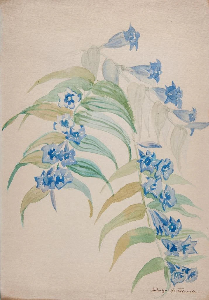 Kunstdruck | Zweige mit blauen Blumen - Jadwiga Gazowska